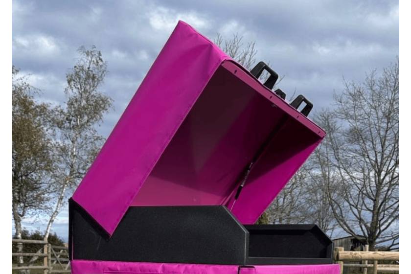 Bâche de protection pour l'option coffre haut de la malle solo. 6 couleurs au choix, autres RAL sur demande (délai rallongé).